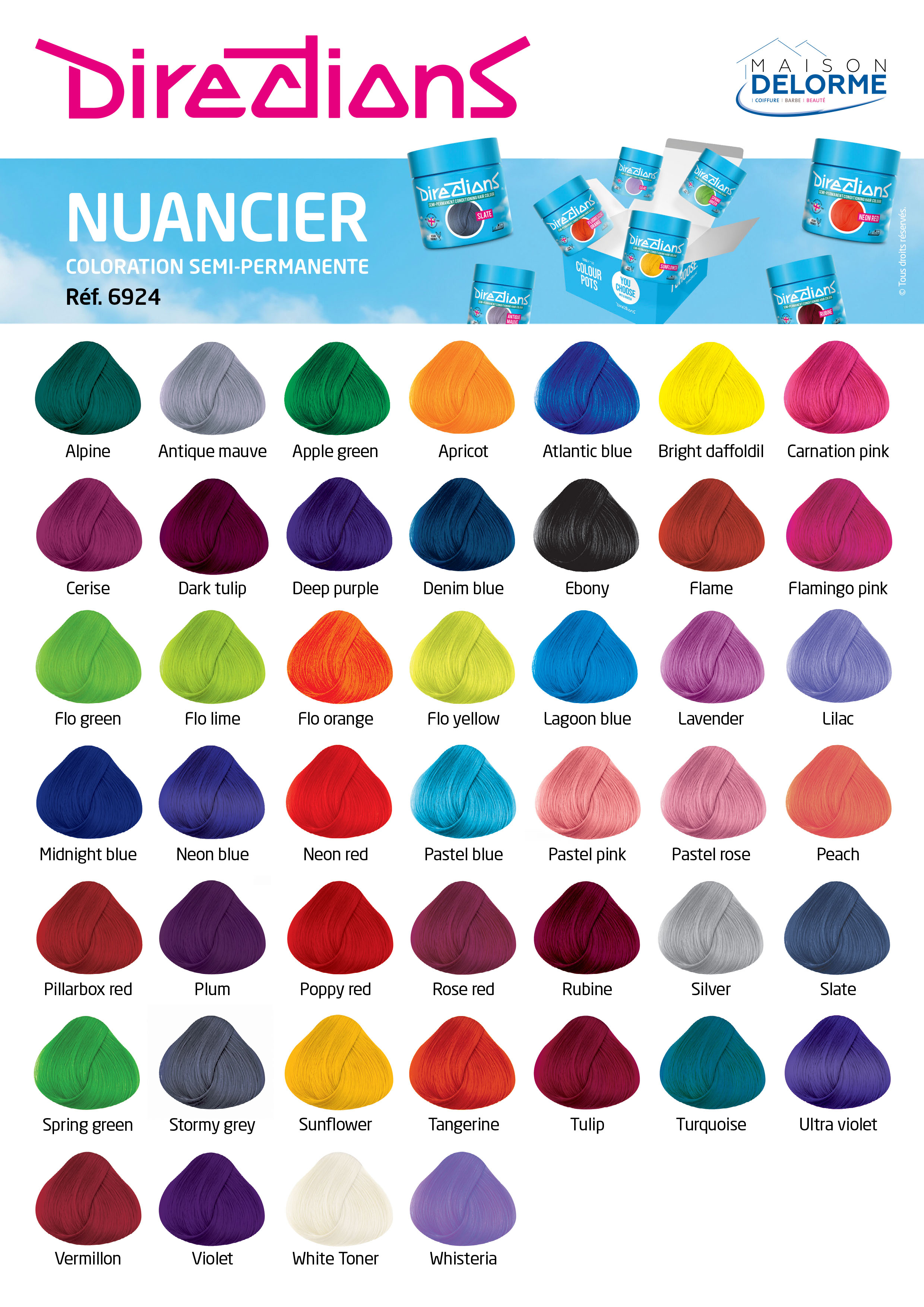 Les colorations semi-permanentes La Riche Directions ont plus de 30 couleurs au choix. Utilisez l'offre pour choisir votre coloration préférée. Vous pouvez également mélanger deux colorations pour la couleur parfaite que vous désirez !